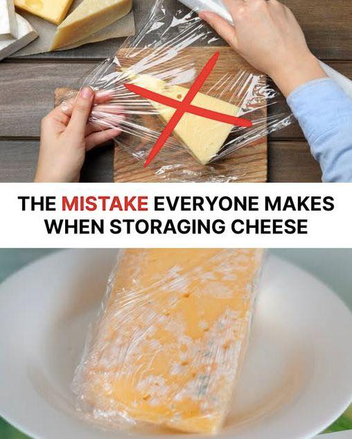 Storing cheese may seem simple, but many people unknowingly damage the texture, flavor, and shelf life of their cheese by using the wrong method. The most common mistake — as shown in the image — is wrapping cheese tightly in plastic wrap. Although it might look convenient, this habit can actually ruin the cheese over time.