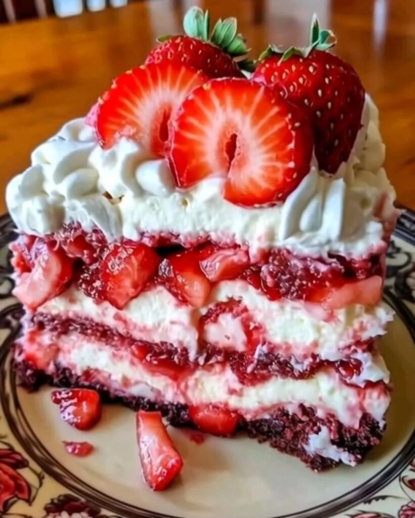 🍓 Gâteau Fraises & Crème Chantilly IngrĂ©dients : 1 gĂ©noise au chocolat (ou gâteau moelleux au cacao) 400 ml de crème liquide entière bien froide 3 cuillères Ă soupe de …